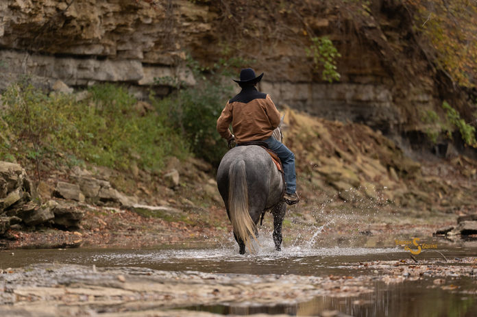 Off property and on the trails, Hermione is reliable and happy. She is used to loading up and going places, and she does not get worked up in new environments. She has great trailer manners, and will go off alone or in a group! On the trails, Hermione is a superstar. She crosses water, is safe to ride through town, and will cross any obstacle you put in front of her. She is used to dogs, deer, and ATV's darting out on the trails, and has been a reliable partner everywhere we have taken her!